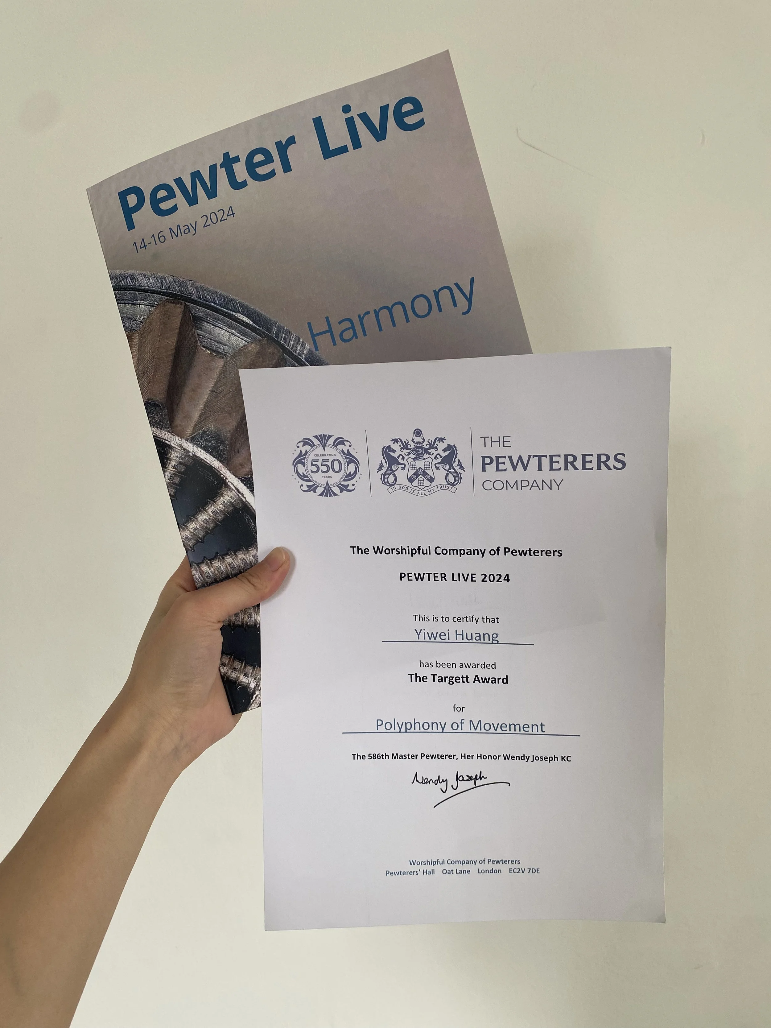 Pewterlive 2024 HarmonyGroup exhibition at Victoria & Albert Museum, LondonWinner of The Targett Award 2024